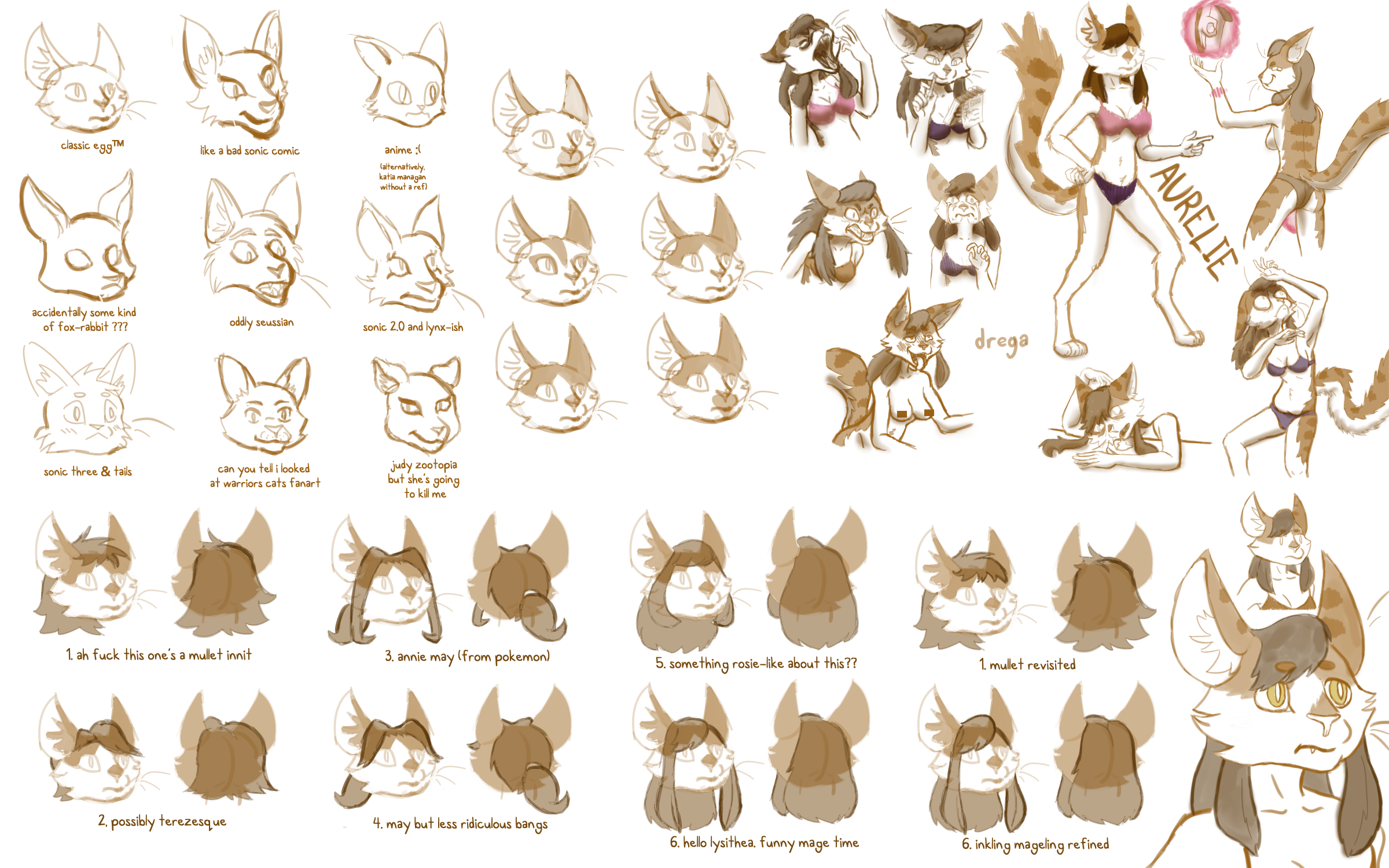 AUTHOR'S NOTE: starting with the design process for aurelie! in about 4 years now she's changed remarkably little. her mondo ears, overly bushy tail (which has only grown in size), and antennae give her a unique silhouette. i'm always trying to give her a bit of cute paunch, still working on that part