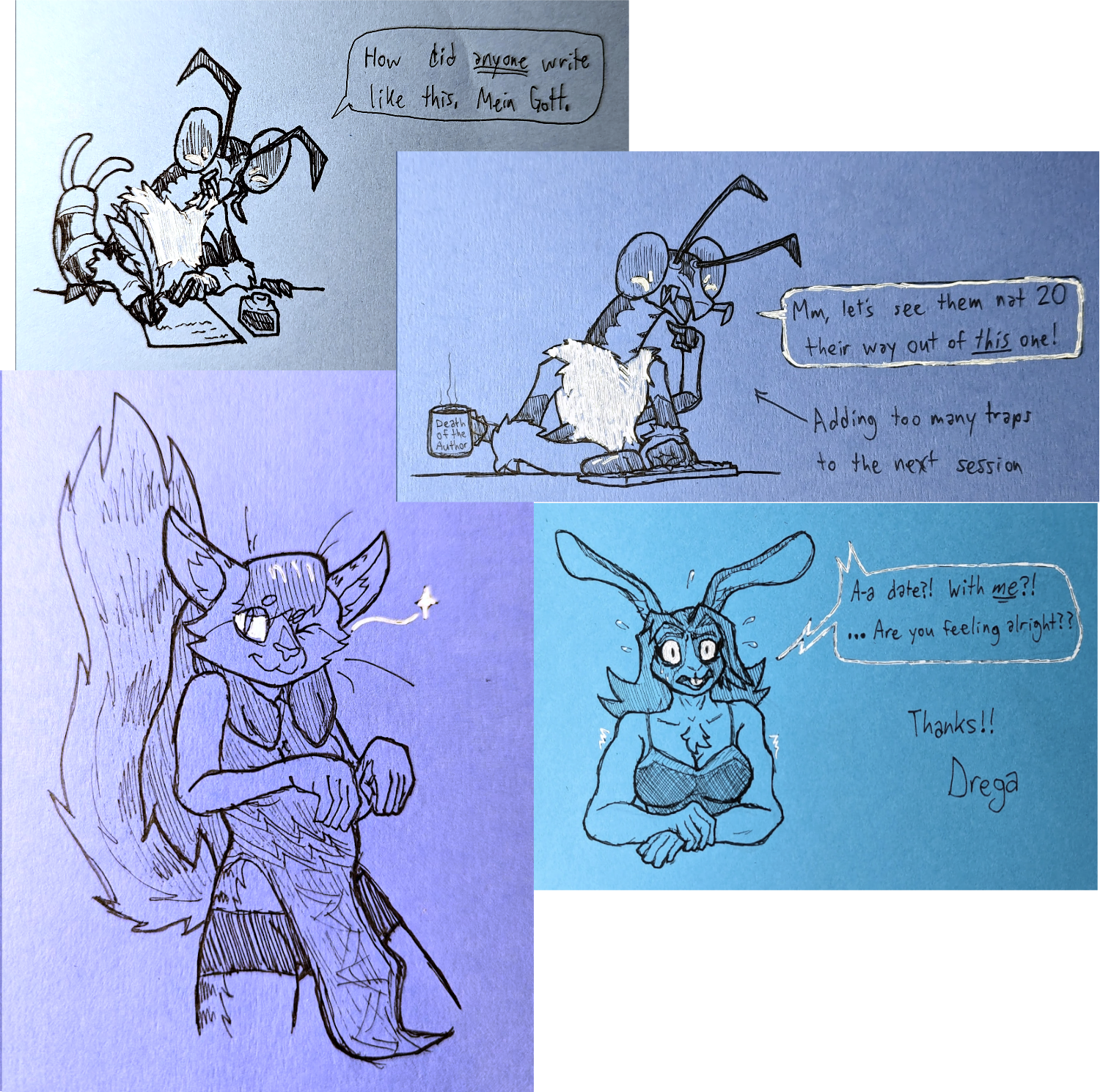 AUTHOR'S NOTE: physical doodles for early purchasers of the choreographer's print run :3